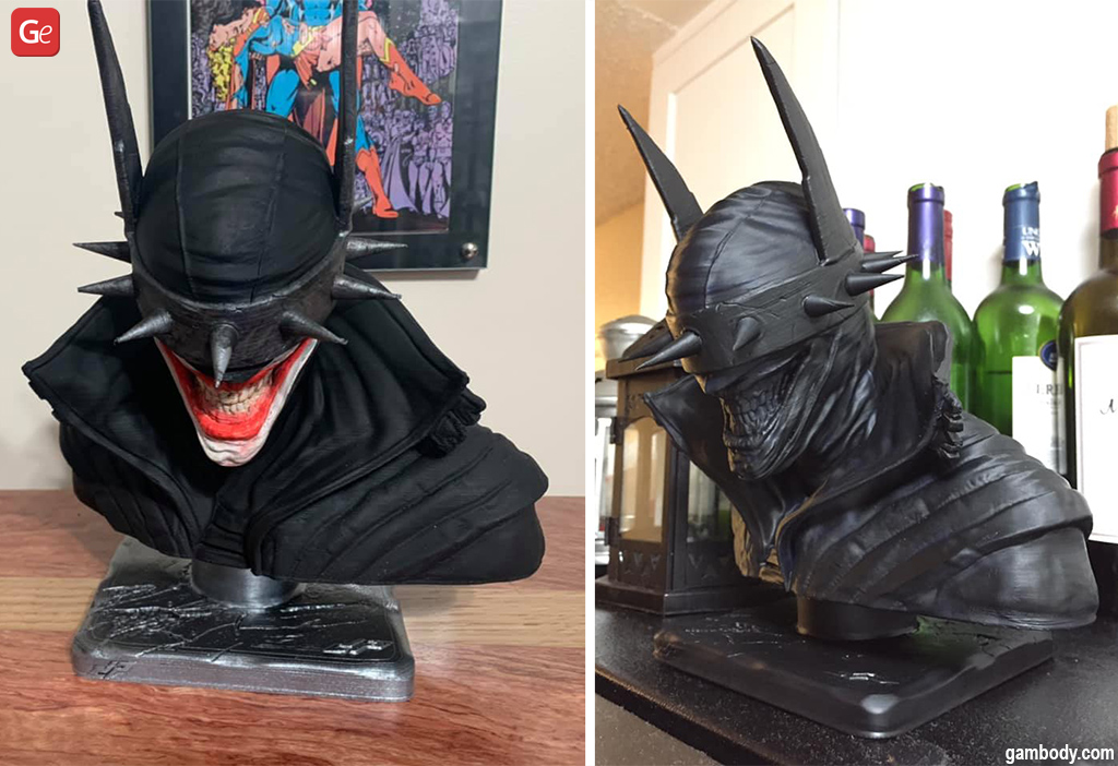 Emotional superheroes always look great. If you are not happy with angry facial expressions, make a bust of Batman Who Laughs statue on your 3D printer.