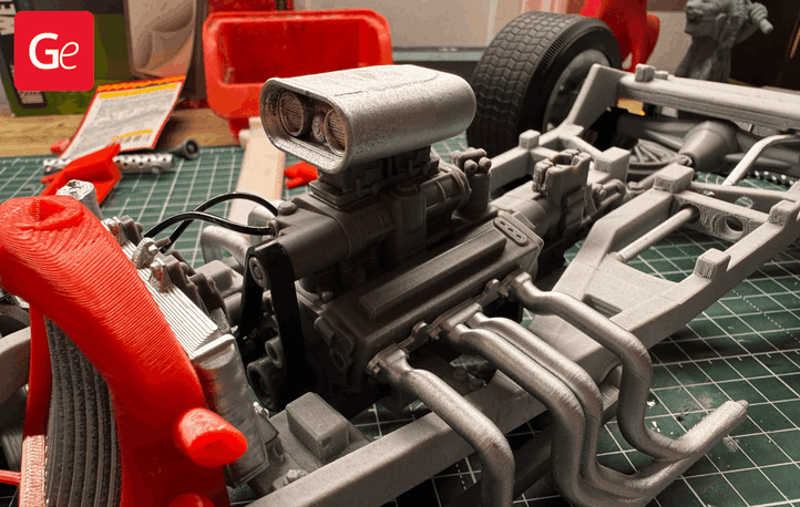I believed that the fantastic frame designed to fit the 1930s Chevrolet Master 5W Coupe would be a perfect starting point for this project. I liked this frame so much that I decided to pair it with Chevrolet’s classic V8 engine, which could become even more powerful with the addition of a supercharger system. I’ll be honest—I wasn’t 100% accurate when working on the 3D printer files. Throughout the process, I was constantly thinking about how the engine needed to be split in order to be printed and assembled correctly. As a result, I placed some components, such as the oil filter and alternator, in slightly different locations.