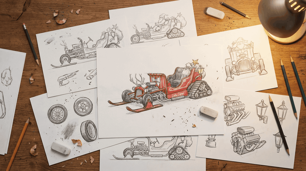 In my 3D printing design, I wanted to blend the magic of the North Pole with the raw power of classic American muscle cars.