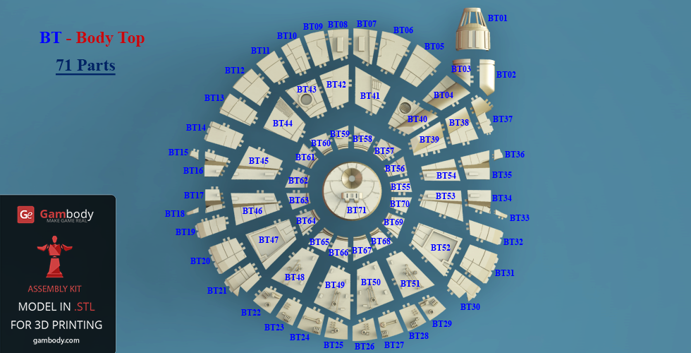 The entire model consists of 380 parts: 279 parts for the exterior and 101 parts for the interior components. Each part has been designed to be printed on an 18x19cm heated bed. The assembly might take another month, but it’s worth the effort.