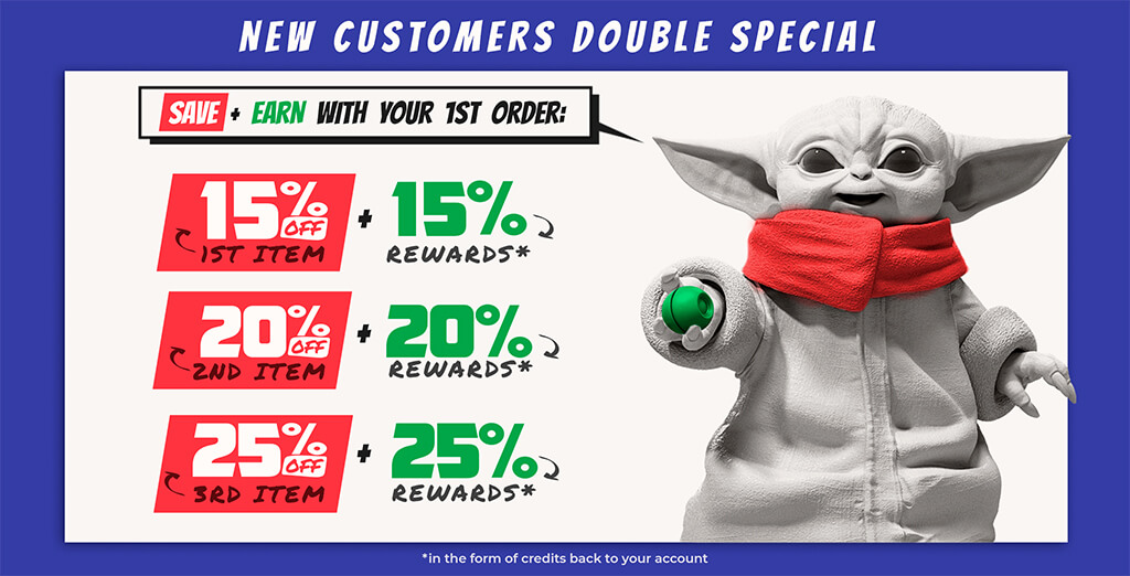 With such a beneficial campaign fading away, we’re thrilled to introduce something even more exciting. Starting from today, the 7th of February 2020, welcome – New Customers Double Special, the campaign that allows you to save money and earn credits simultaneously. It’s never been this lucrative to create a Gambody account and buy your first 3D printing figurines from us.