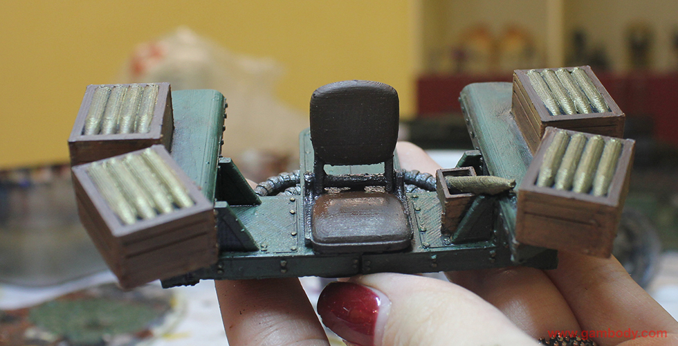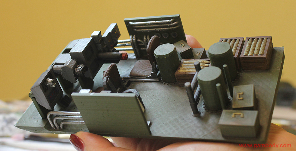The interior layout of the tank was also painted and fitted into the hulls of the 3D printed tank.