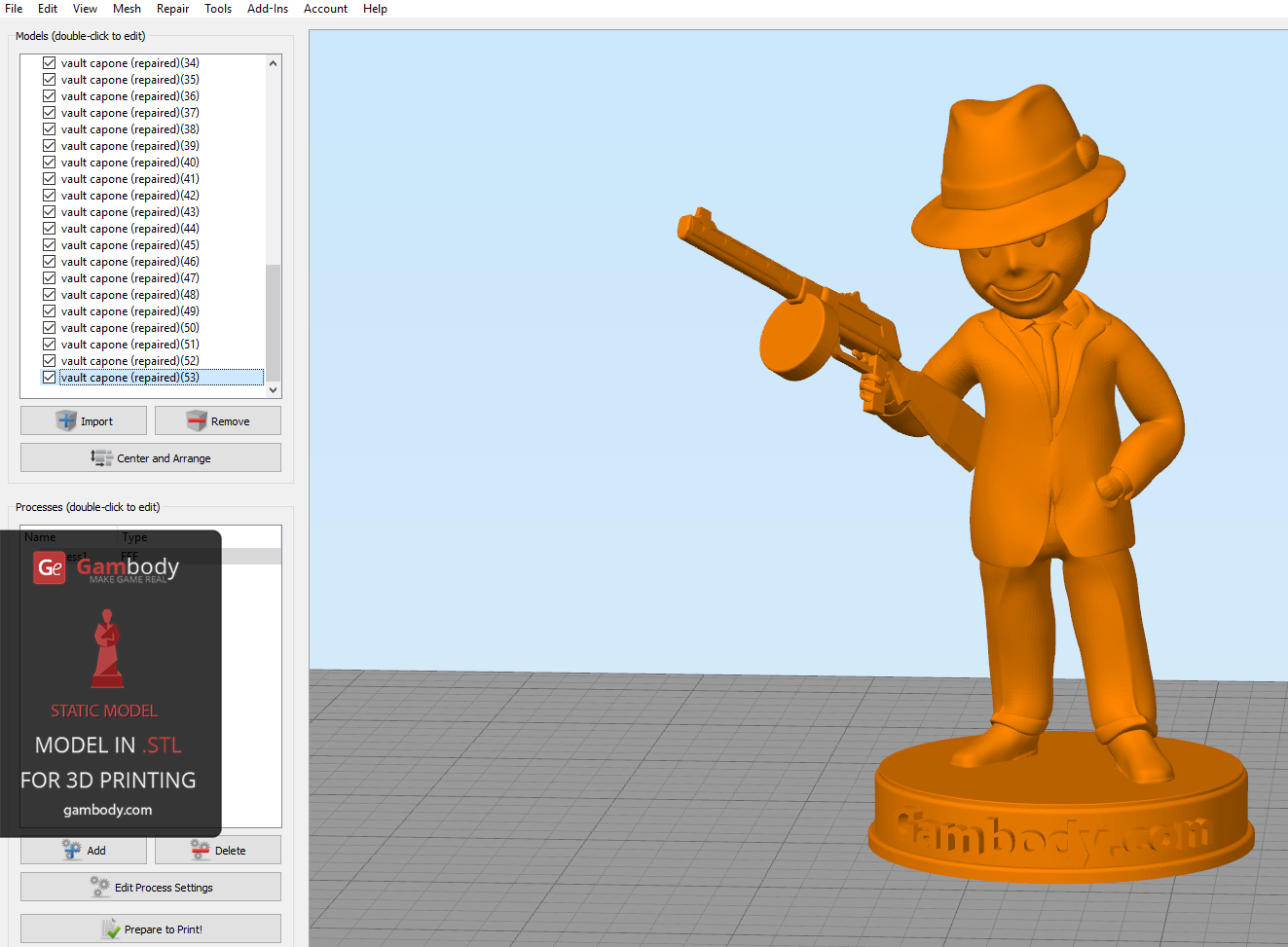 We will take FALLOUT 4 – Vault Boy 3D model as an example to explain in detail what exactly gets wrong when using Simplify3D software to print a 3D model.