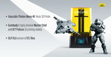 This bundle consists of Anycubic Mono 4K Resin 3D PrinterMaster Chief 3D Printing Figurine, and D77 Pelican 3D Printing Model. The 3D printing models come in the form of digital files in StereoLithography (.STL) format that is optimized for DLP/SLA 3D printing.