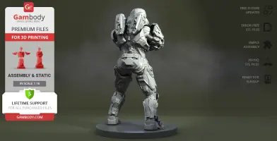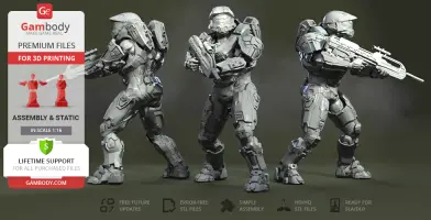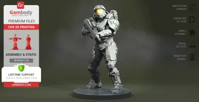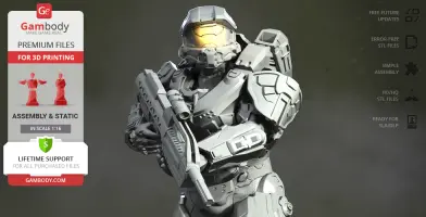 Master Chief 3D Printing Figurine:DLP/SLA 1.0 version features:- Contains 9 parts;- A printed model is 140 mm tall, 85 mm wide, 105 mm deep;- All parts are divided in such a way to fit the build plates and to ensure that support structures are generated where needed.