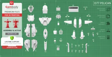 - 2 versions of D77 Pelican STL files - DLP/SLA and DLP/SLA Pre-supported
