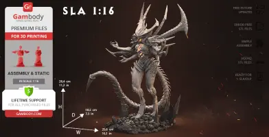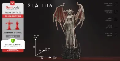 Lilith and Diablo models for 3D Printing were carefully designed by our talented contributing 3D artists and thoroughly moderated and adapted for 3D printing by Gambody team. This bundle comprises the DLP/SLA version that are specifically adapted to be printed on resin 3D printers such as the Anycubic Photon Mono 2. The process of adaptation presupposes that practical aspects of printing the model using the DLP/SLA/LCD technology are taken into account, and the model's scale and cutting are chosen to ensure an optimum result of printing.