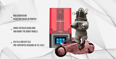 This bundle consists of Creality HALOT-ONE Resin 3D PrinterAkira Bike 3D Printing Model and Robby the Robot 3D Printing Model. The 3D printing models comprise the files in StereoLithography (.STL) format that is optimized for DLP/SLA 3D printing.