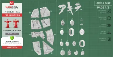 Both Warthog M12B and Akira Bike models for 3D Printing were carefully modelled by our talented contributing 3D artists and thoroughly moderated and adapted for 3D printing by Gambody team. This bundle comprises the DLP/SLA and DLP/SLA Pre-supported versions that are specifically adapted to be printed on resin 3D printers such as HALOT-ONE. The process of adaptation presupposes that practical aspects of printing the model using the DLP/SLA/LCD technology are taken into account, and the model's scale and cutting are chosen to ensure an optimum result of printing.