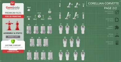 - 2 versionsof Corellian Сorvette STL files - DLP/SLA and DLP/SLA Pre-supported