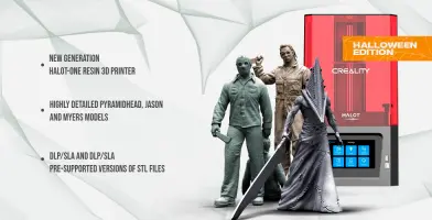 This bundle consists of Creality HALOT-ONE Resin 3D PrinterJason Voorhees 3D Printing Figurine, Michael Myers 3D Printing Figurine and Pyramid Head 3D Printing Figurine. The 3D printing models comprise the files in StereoLithography (.STL) format that is optimized for DLP/SLA 3D printing.