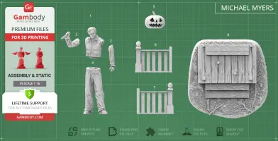 - 2 versionsof Michael Myers STL files - DLP/SLA and DLP/SLA Pre-supported