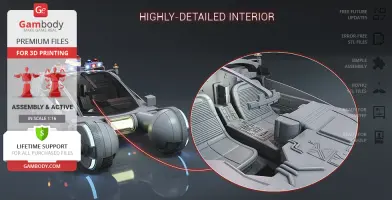 - You can light up a lot of assembly elements that comprise the 3D printing Spinner. LED wiring can be easily installed throughout the body of the vehicle, while the battery can be hidden under the highly detailed engine;