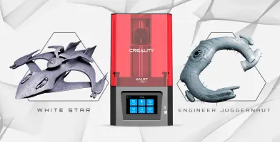 This bundle consists of Creality HALOT-ONE Resin 3D Printer, White Star 3D Printing Model, and Engineer Juggernaut 3D Printing Model. The 3D printing models comprise the files in StereoLithography (.STL) format that is optimized for DLP/SLA 3D printing.