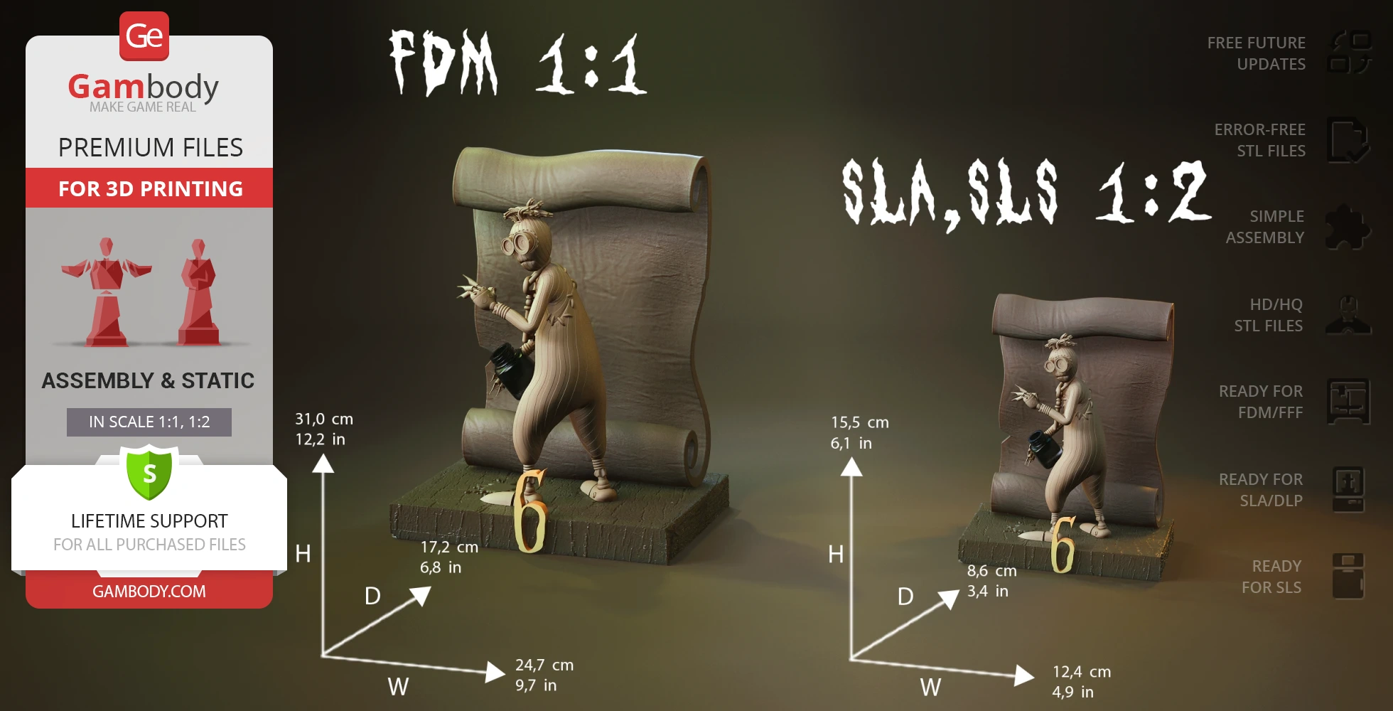 - 4 versions of 6 Stitchpunk STL files for FFF/FDM, DLP/SLA, DLP/SLA Eco, and SLS — files for all versions are available for download after the purchase;