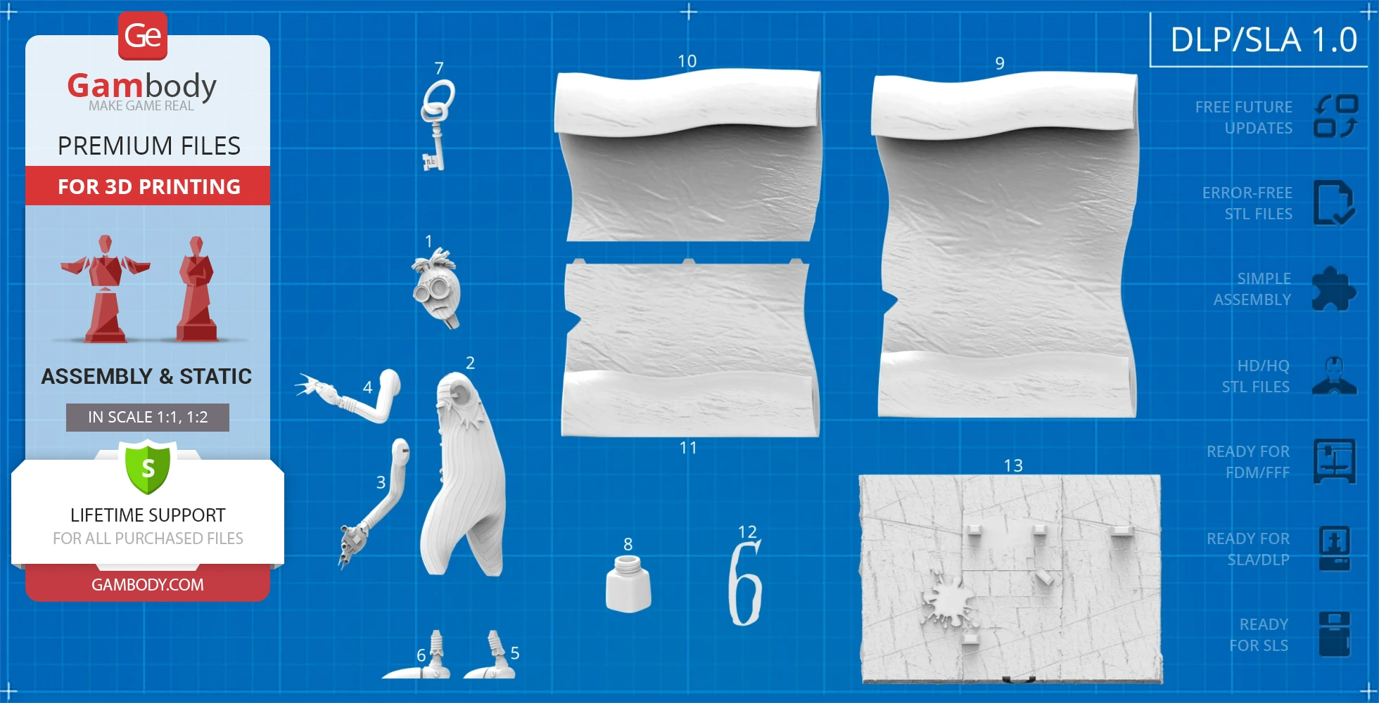 - The model is available in recommended scales of 1:8 for the FFF/FDM version and 1:16 for the DLP/SLA/SLS versions.