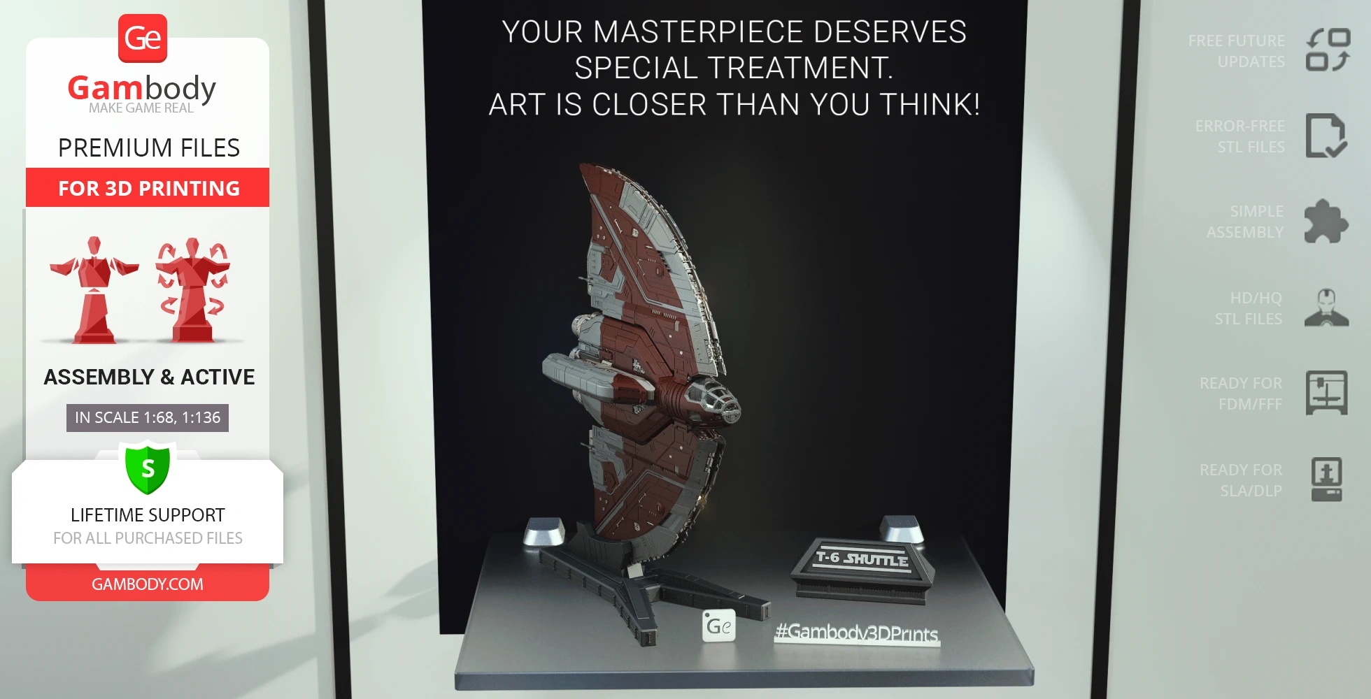 Watch the assembly video for Ahsoka Tano's T-6 Jedi Shuttle 3D Printer Files | Assembly + Action, and explore more tutorials, behind-the-scenes content, 3D printing timelapses, and painting guides on the official Gambody YouTube channel.