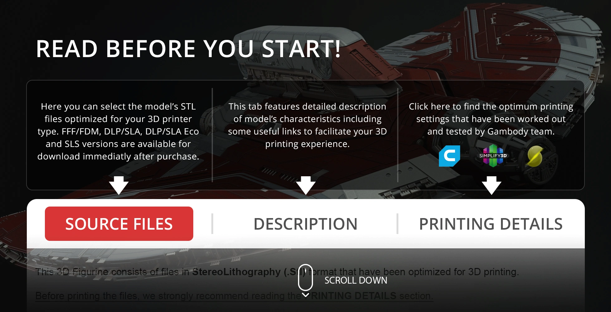 Before printing the files, we strongly recommend reading the PRINTING DETAILS section.