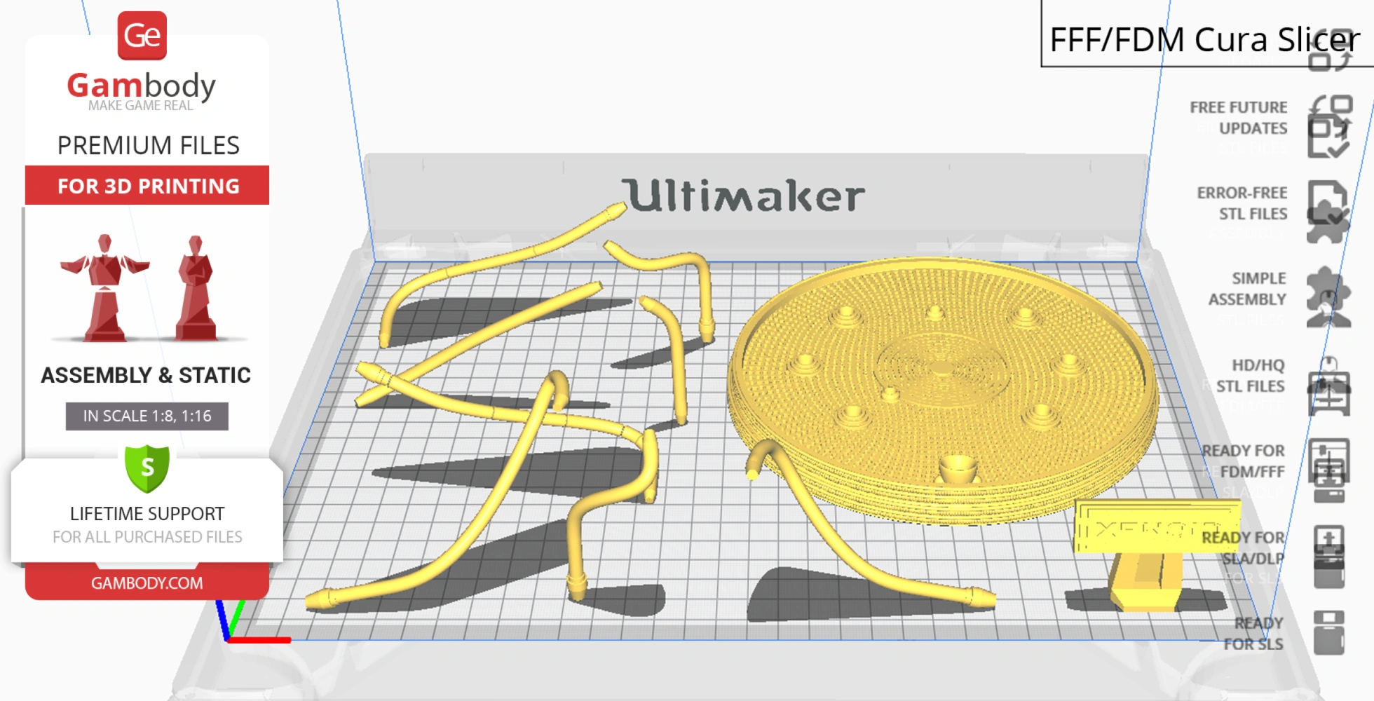 - The assembly parts in the FFF/FDM version come in the recommended print orientations for easy bed placement;