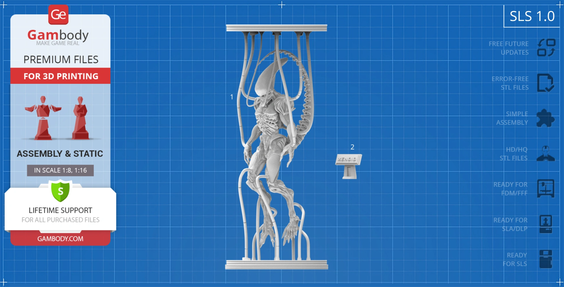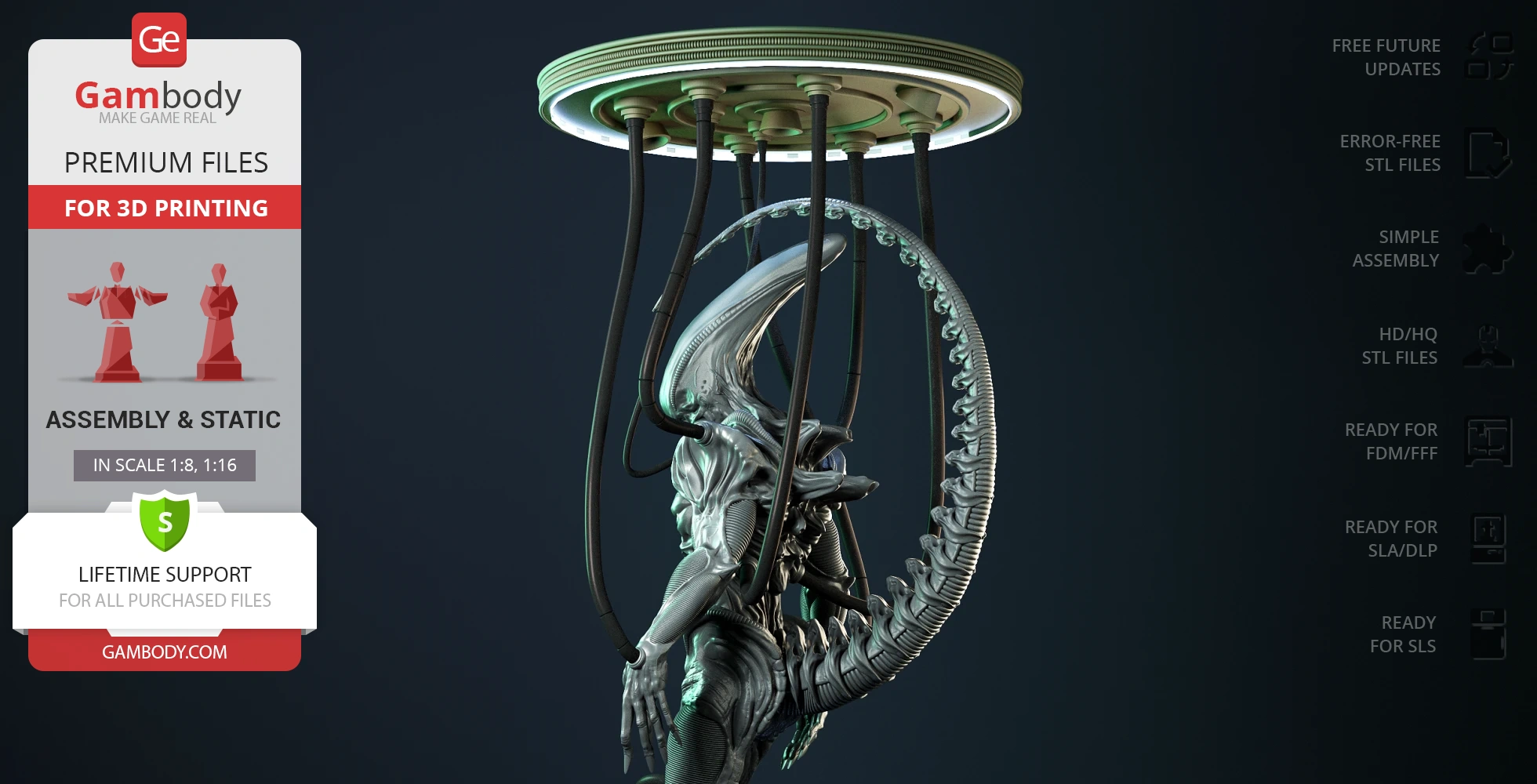 Watch the tutorial on how to assemble the 3D Printed Xenomorph in Incubator model from the provided 3D Print Files onGambody YouTube channel.
