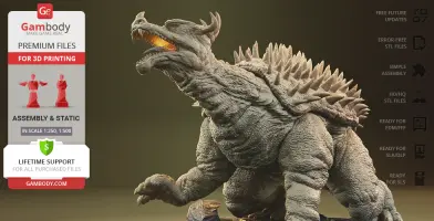 - STL files of Anguirus 3D printing model which consist of 81 parts;- 4 versions of files for this model for FFF/FDM, DLP/SLA, DLP/SLA Eco and SLS;- High-poly detailed figurine of Anguirus;- Assembly Manual for FFF/FDM 1.0 and DLP/SLA 1.0 versions in PDF format;- Detailed settings that we provide as a recommendation for Cura , Simplify3D and Slic3r for the best print;- Full technical support from the Gambody Support Team.