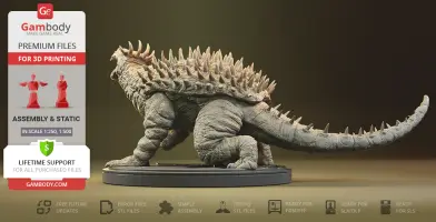 No one had dared confront the mighty King of Monsters before him - the one and only Anguirus! This legendary kaiju, who later became Godzilla’s loyal ally and closest friend, is a quadrupedal dinosaur, who had remained dormant until he was awakened and irradiated by nuclear bomb tests in the modern era. This spiky fellow is a wild mix of various reptiles such as ankylosaurus, a styracosaurus, and even a crocodile. The tenacious prehistoric warrior, who never backs down in the face of danger and is ready to put up a fight against even the strongest monsters, was embodied in the Anguirus 3D Printing Figurine by one of our talented contributing 3D artists. The author’s boundless love for the Kaiju universe encouraged him to spend circa 200 hours in order to recreate the monster with utmost precision. The Anguirus 3D Printing Figurine boasts an immense level of detail and exquisitely realistic depiction of the creature. The monster is portrayed letting out a fierce roar, while his sharp serrated teeth are bare in a threat. The snout of Anguirus is decorated with a rhino-like horn and head of the kaiju - with a graceful yet dangerous crown of horns. Anguirus for 3D printing has his carapace and the tremendously long tail studded with a plethora of spikes that will come in handy when confronting yet another nemesis. Just like his movie counterpart, the Anguirus 3D Printing Figurine’s hind limbs are almost twice as long as the forelimbs and allow him to launch attacks and leap at incredible speed. In order to make the model even more dynamic, the author depicted Anguirus with one of the clawed feet ready to strike. Should the Anguirus 3D Printing Figurine join your kaiju army, together they will be indestructible!