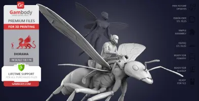 This figurine is the second part of Diorama "Ant-Man and The Wasp". The model is saved in STL files, a format supported by most 3D printers.