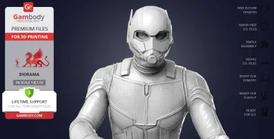 Scale: Ant-Man height is 1780 mm. The scale of this model made in proportion to it. 1/8 for FFF/FDM version and 1/16 for DLP/SLA/SLS version.