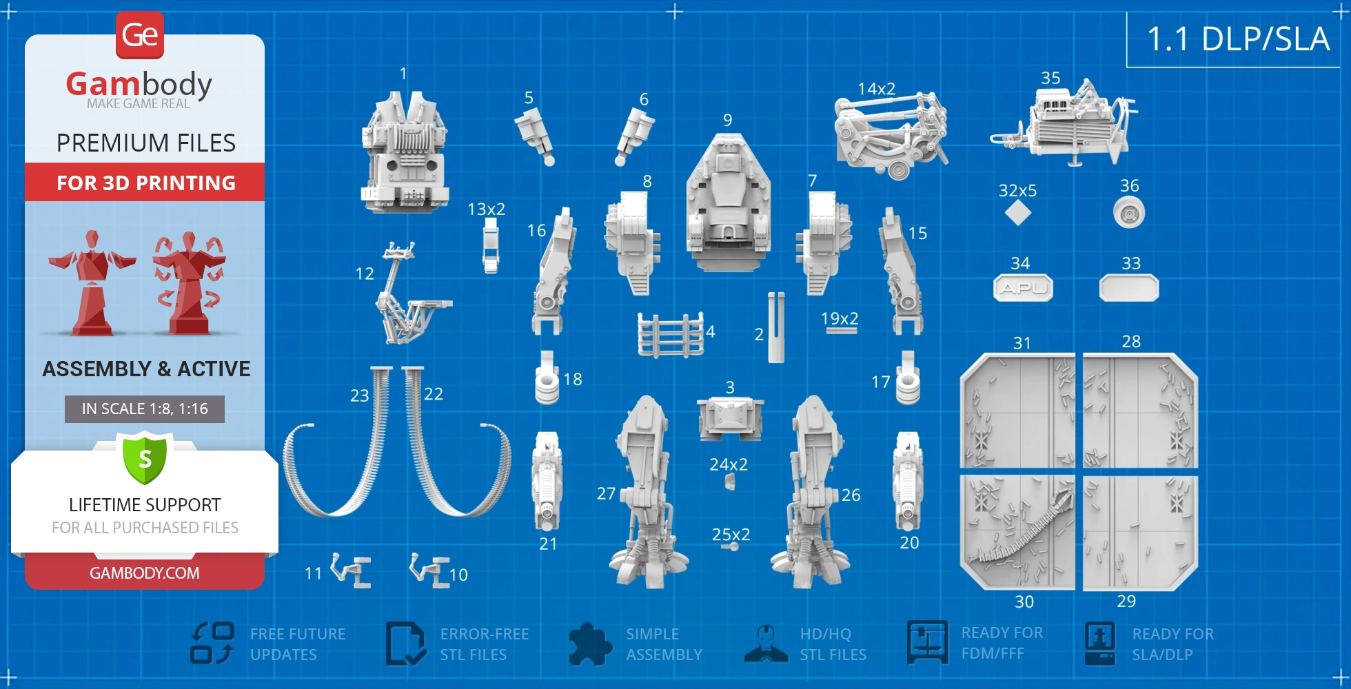 Matrix APU 3D Printer Files | Assembly + Action includes 2 version(s) for the supported 3D printer type(s): FFF/FDM, DLP/SLA. Files are available for download after purchase. See the Description and Specifications sections for more details about this model.