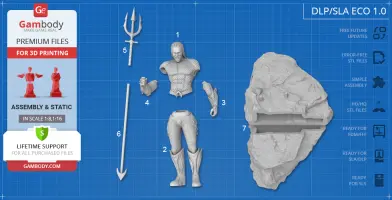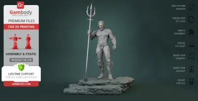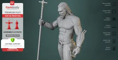 - STL files of Aquaman King of Atlantis 3D Model for 3D printing which consist of 30 parts;- 4 versions of files for this model for FFF/FDM, DLP/SLA, DLP/SLA Eco and SLS;- High-poly detailed figurine of Aquaman King of Atlantis;- Detailed settings that we provide for Cura , Simplify3D and Slic3r for the best print;- Full technical support from the Gambody Support Team.