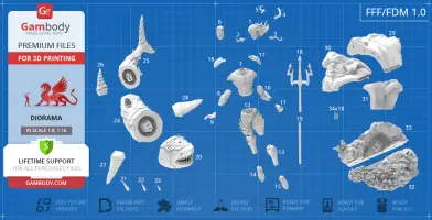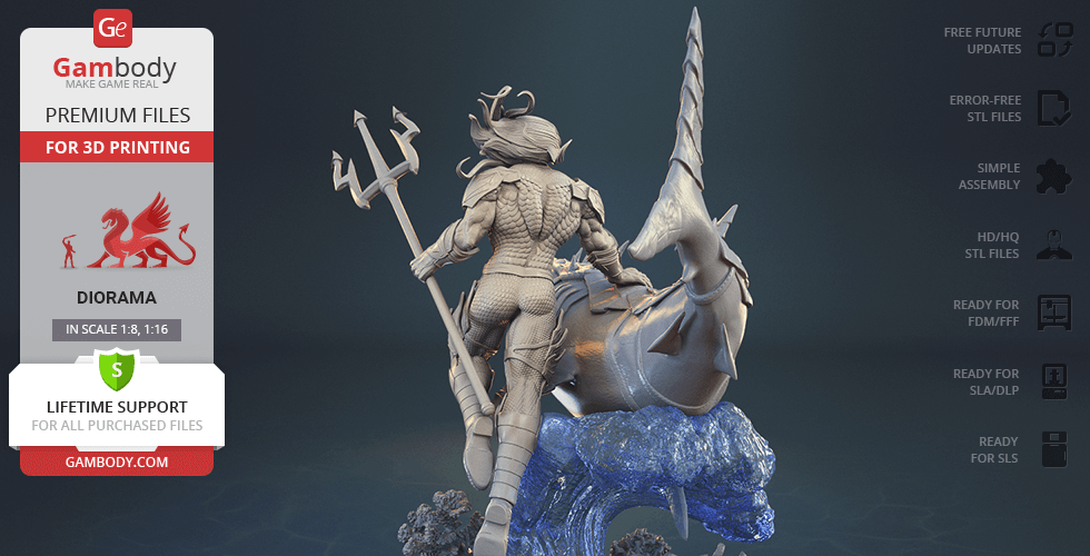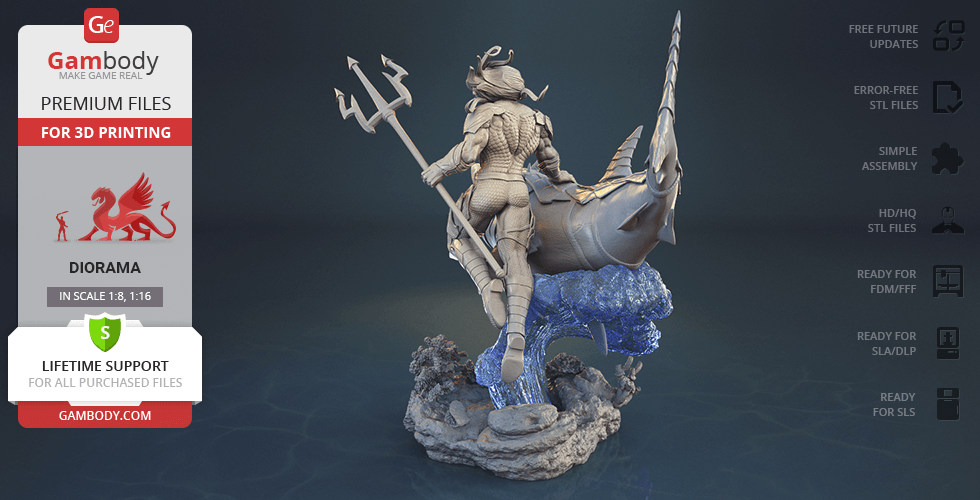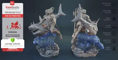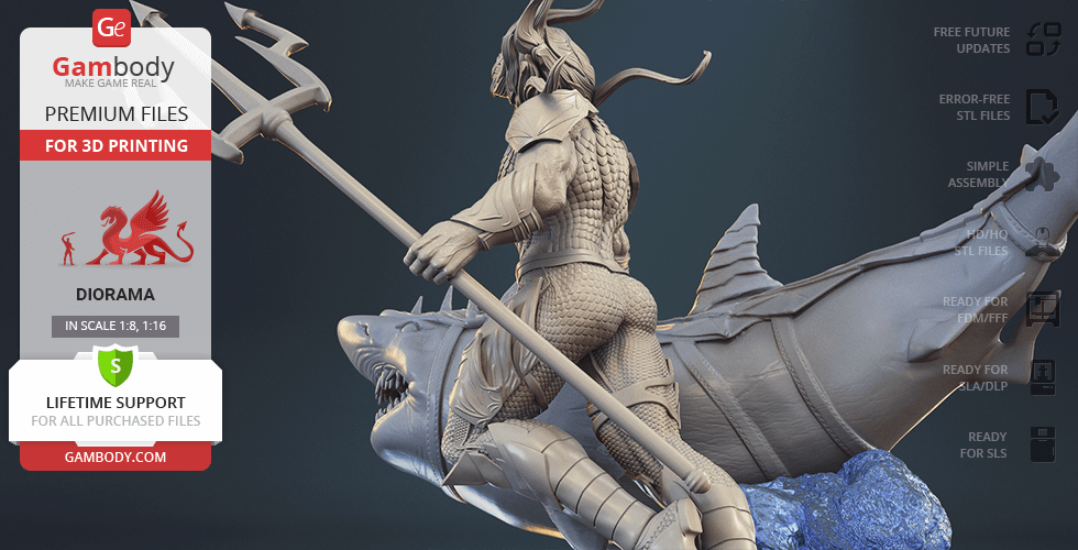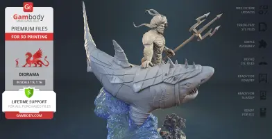 Watch the tutorial on how to assemble the 3D Printed Aquaman & Shark Diorama from the provided 3D Print Files on Gambody YouTube channel.