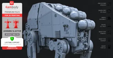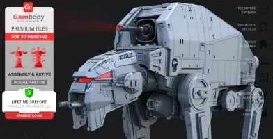The massive and extremely intimidating walker AT-M6 instilled sheer terror into enemies of First Order in the course of Star Wars: The Last Jedi film. The All Terrain MegaCaliber Six was manufactured in the years following the end of the Galactic Civil War by Kuat-Entralla Drive Yards, the company that produced AT-M6’s predecessor AT-AT. At 40.87 meter long the Gorilla walker is actually almost twice the length of an AT-AT! It is also known to be coated in some of the most advanced armour in the Galaxy manufactured at secret facilities. And the reason why this walker had to be so large and powerful was both to hold that MegaCaliber Six turbolaser cannon and to make the heavy assault walker even more fearsome. The author of this huge 3D printing project spent 160 hours to create the model inspired by the AT-M6's most notable deployment during the Battle of Crait. The level of detail and attention to the functionality of the assembly parts will definitely impress you. Due to the model’s movability, one can even recreate the knuckle-dragging movement of AT-M6’s distinctive gorilla-like front feet! We are sure that any Star Wars fan will be delighted to enlarge the 3D printed collection with the walker that can do more damage than the orbital bombardment.