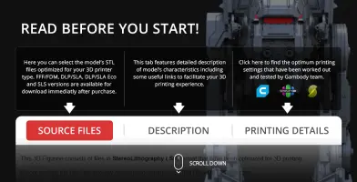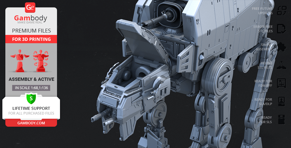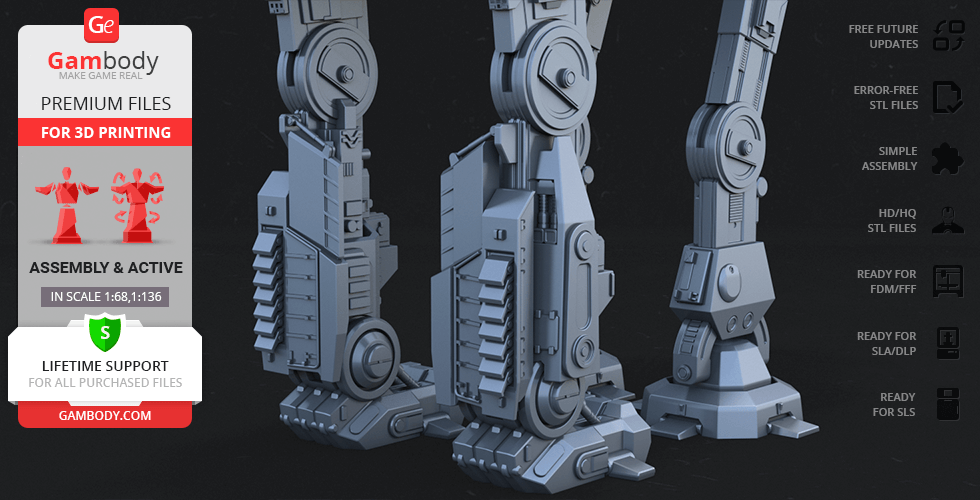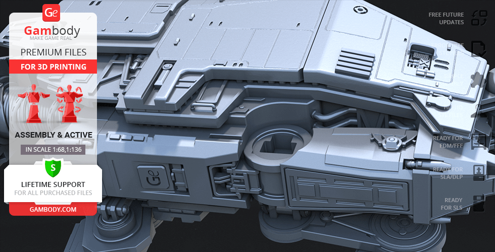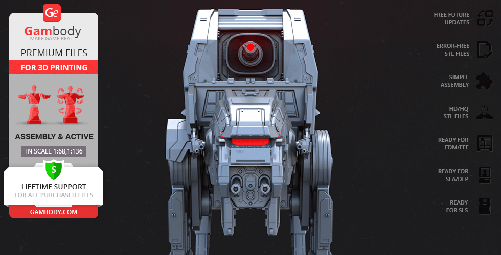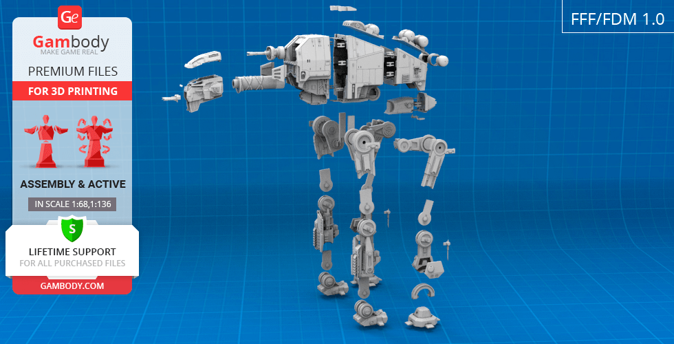AT-M6 Walker 3D Printing Model comes in 4 versions for each 3D printer type (FFF/FDM, DLP/SLA). Files for each version are available for download after the purchase.