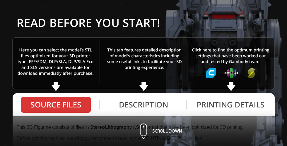 Before printing the files, we strongly recommend reading the PRINTING DETAILS section.