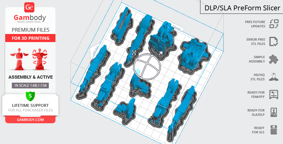 - 4 versions of files for this model for FFF/FDM and DLP/SLA printers;