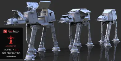 - STL files of high-poly AT-AT Walker model for 3D printing consist of 182 files;