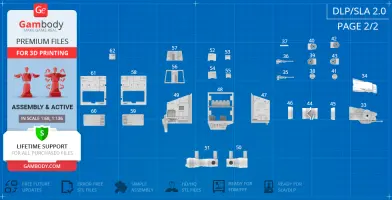 The assembly parts are connected using specially designed integrated connectors that fit securely into the corresponding slots. Made with a lock (120_Ge_lock_10H_(x16) that you need to print 16 times. Optionally, for added strength and rigidity, the parts can be glued together. The updated version of the model with a significantly enhanced level of detail, completely reworked joints, and articulated elements;