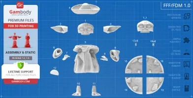 FFF/FDM 1.0 version features:- Contains 18 parts;- A printed model is 254 mm tall, 237 mm wide, 196 mm deep;- Assembly kit includes locks to attach the model's parts securely without glue. Lock 17_ge_lock_7S(x9) needs to be printed 9 times; lock 18_ge_lock_10H(x8) needs to be printed 8 times;- The figurine can be displayed either with or without sombrero;- All parts are divided in such a way that you will print them with the smallest number of support structures.