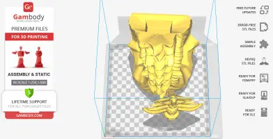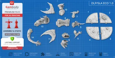 - STL files of Bagan 3D Model for 3D printing which consist of 75 parts;- 4 versions of files for this model for FFF/FDM, DLP/SLA, DLP/SLA Eco and SLS;- High-poly detailed figurine of Bagan;- Detailed settings that we provide for Cura , Simplify3D and Slic3r for the best print;- Full technical support from the Gambody Support Team.