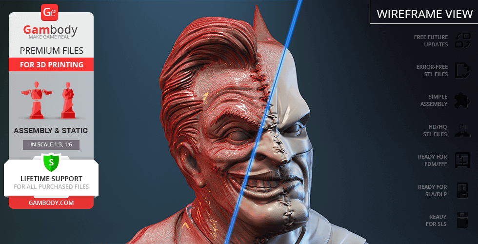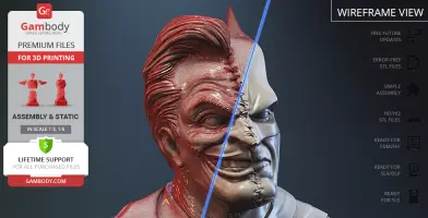 - STL files of high-poly Batman vs Joker Bust model for 3D printing consist of 8 files;