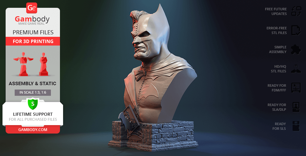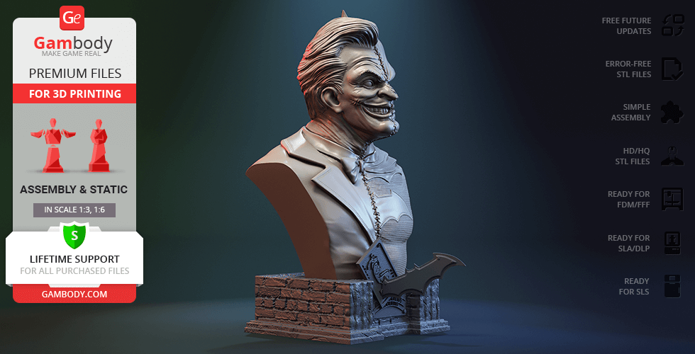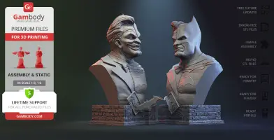 Batman vs Joker Bust 3D Printer Files | Assembly includes 2 version(s) for the supported 3D printer type(s): FFF/FDM, DLP/SLA. Files are available for download after purchase.
