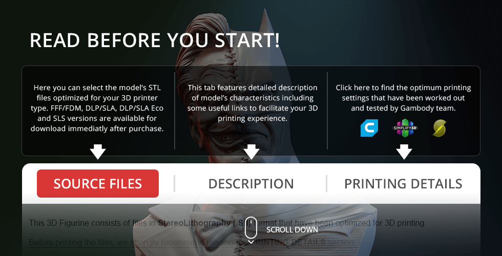 You can get the model of The Batman vs Joker Bust for 3D Printing immediately after the purchase! Just click the green Buy button in the top-right corner of the model’s page. You can pay with PayPal or your credit card.