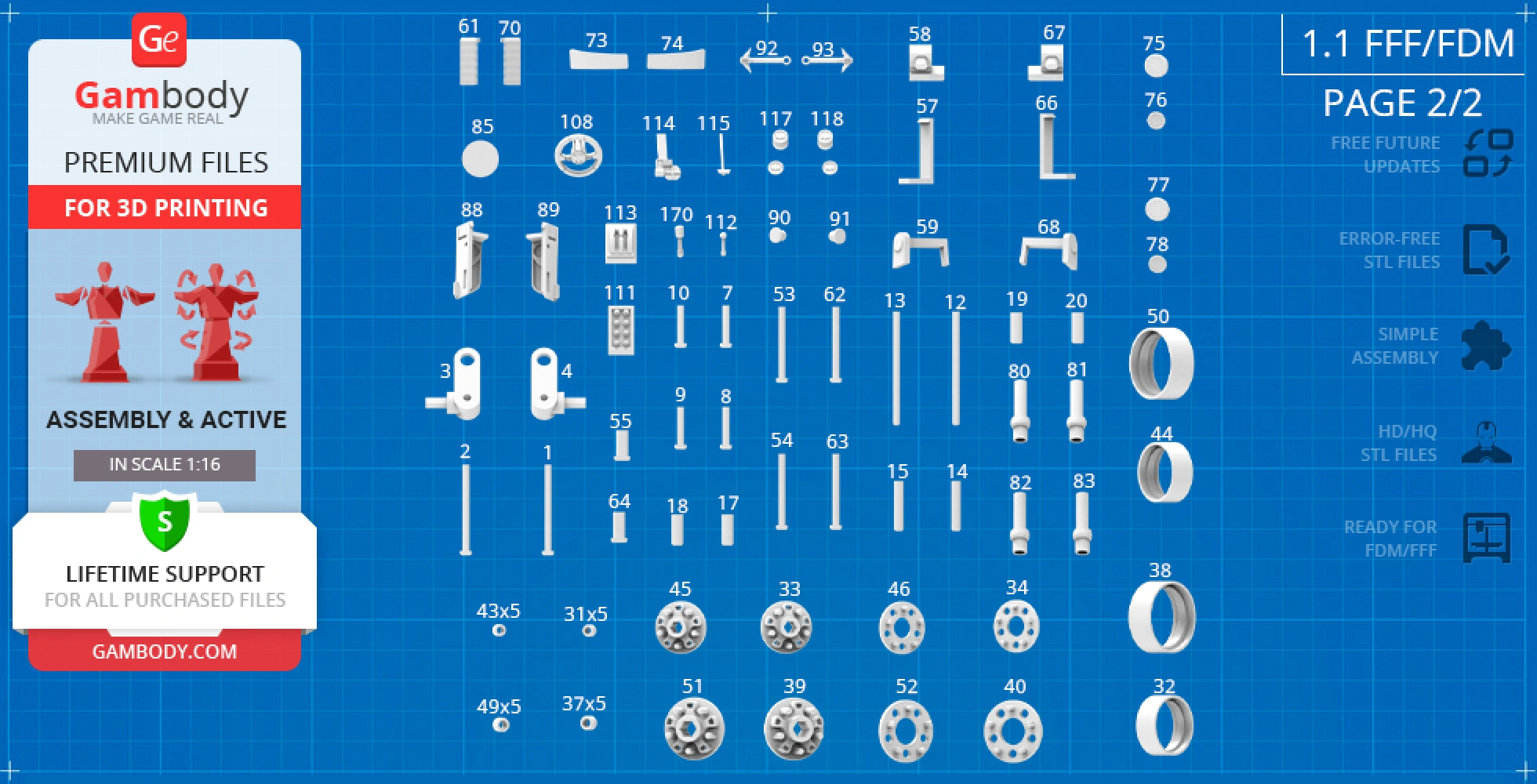 The model is optimized for 3D printing on FFF/FDM printers using filament as the amount of support structures during printing and to ensure that each part fits on an average-sized print bed.