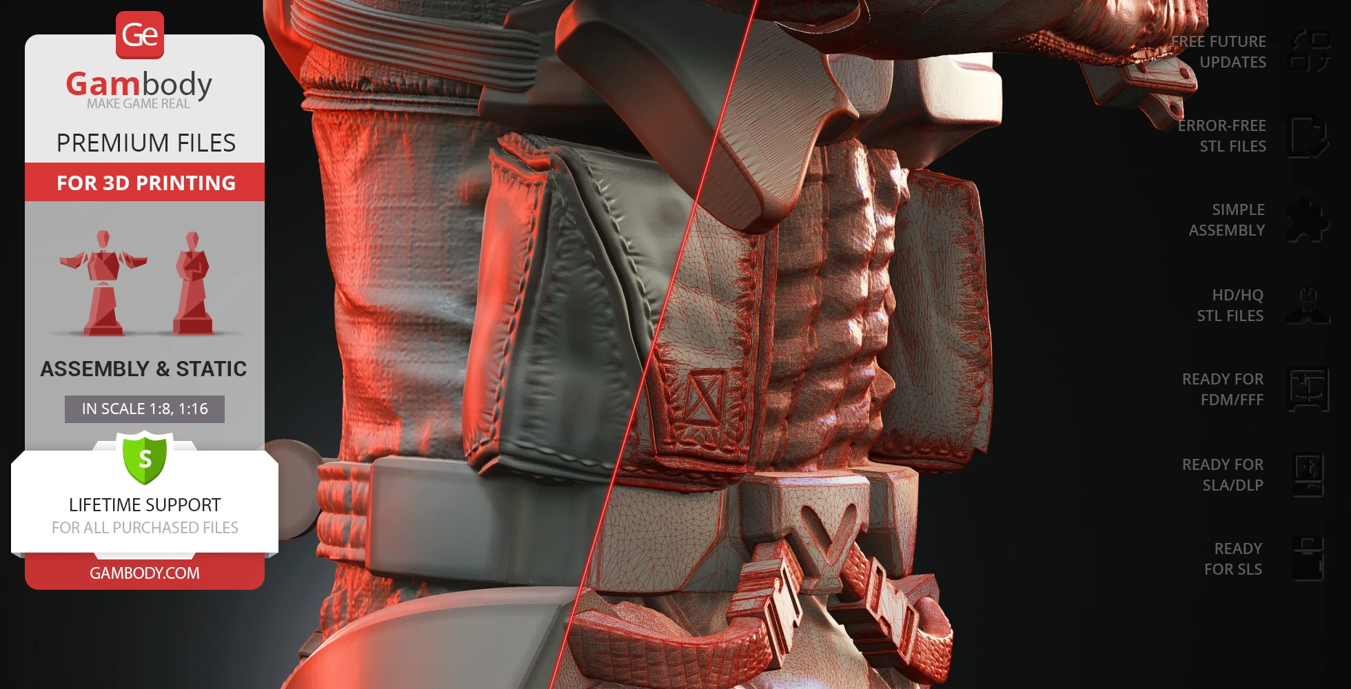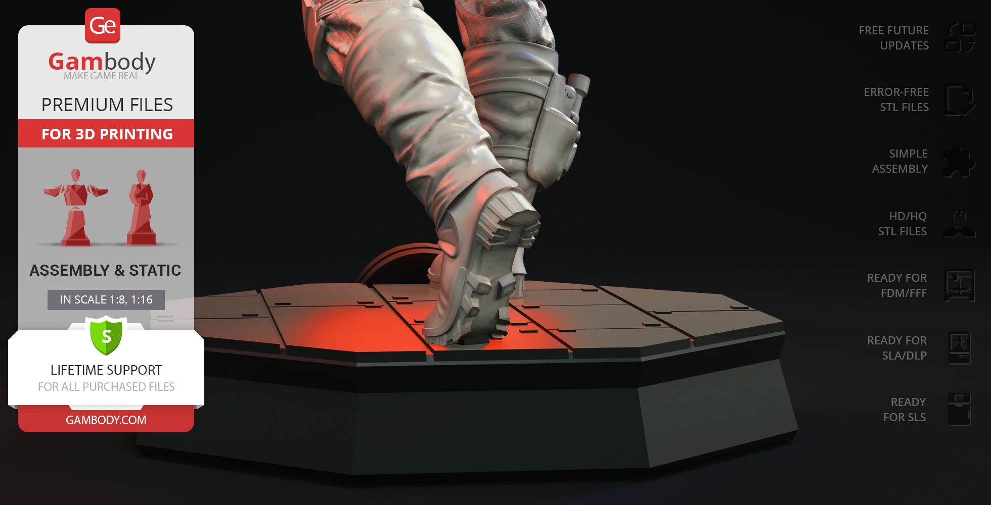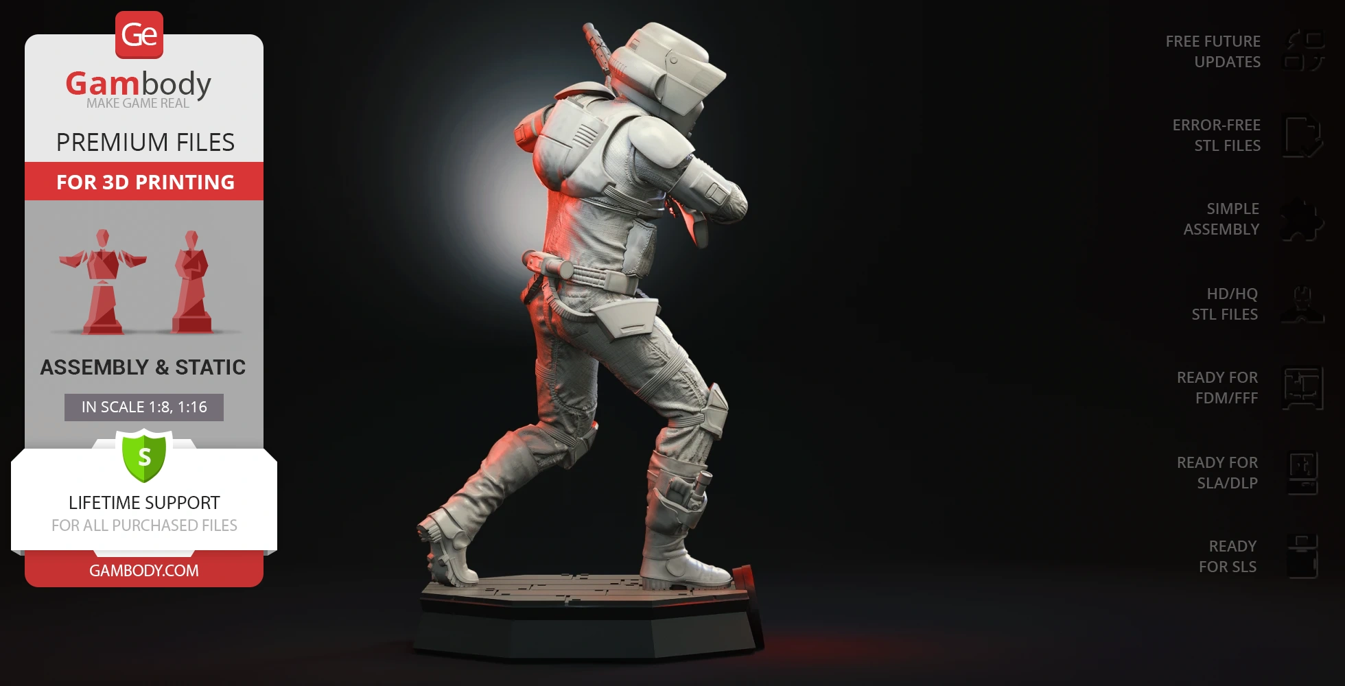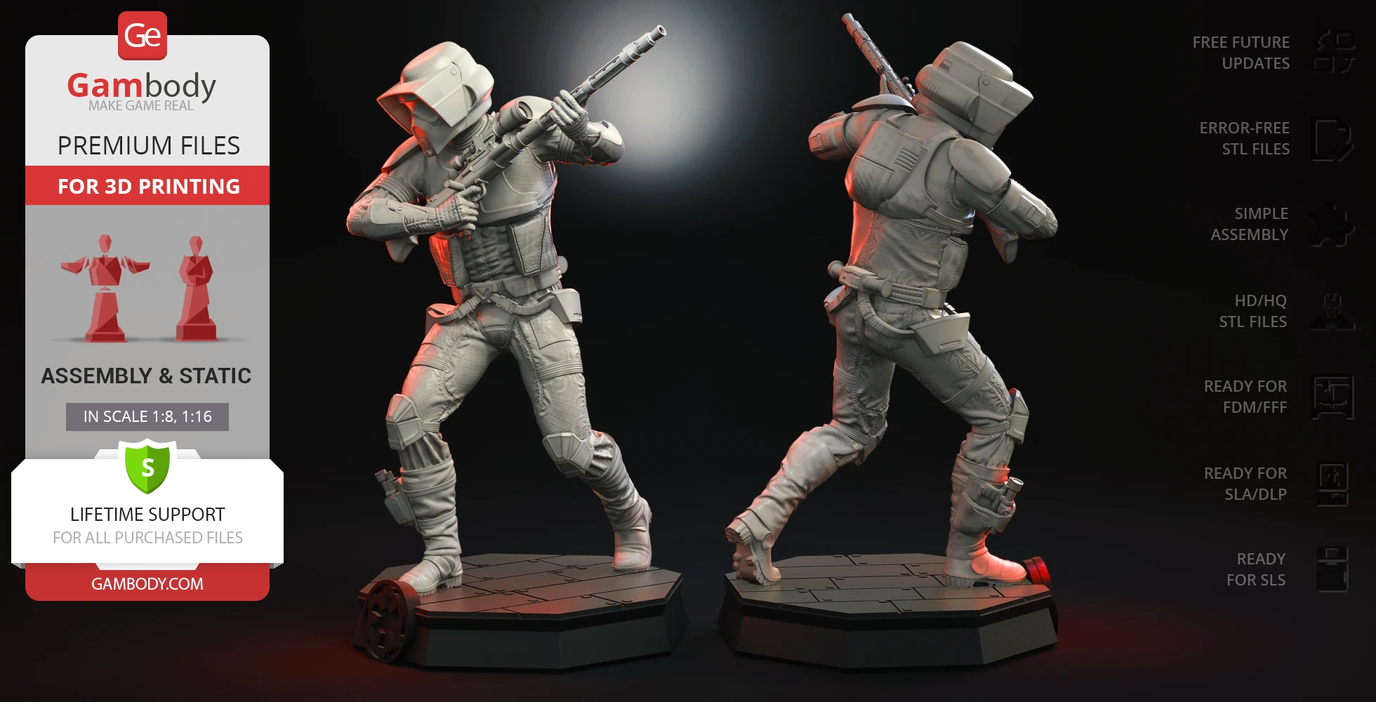 • 4 versions of Scout Trooper STL files for FFF/FDM, DLP/SLA, DLP/SLA Eco, and SLS files for all versions are available for download after the purchase;
