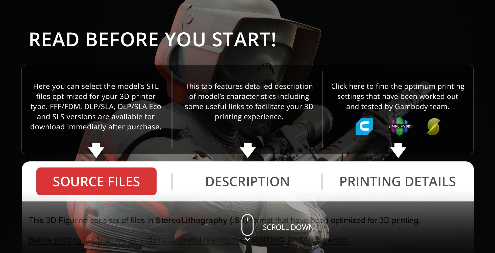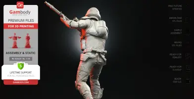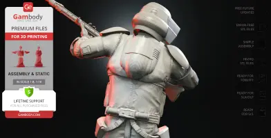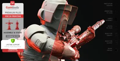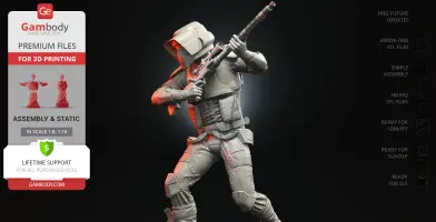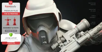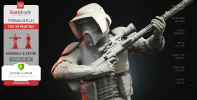 Watch the tutorial on how to assemble the 3D Printed Scout Trooper model from the provided 3D Print Files onGambody YouTube channel.