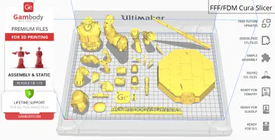 • The assembly parts in the FFF/FDM version come in the recommended print orientations for easy bed placement;