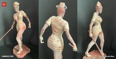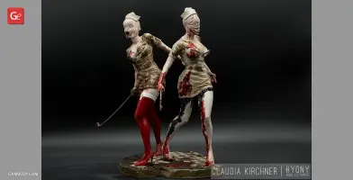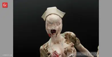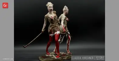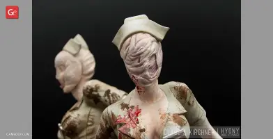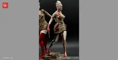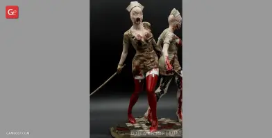 Silent Hill 2 is one of the most notable psychological horror video games of all time. The thrilling and twisted plot of the game, its atmosphere and vivid characters, the locations of the mysterious town of Silent Hill, all these factors definitely contributed to the popularity of the franchise. The Bubble Head Nurse is a female humanoid creature that James Sunderland encounters in Silent Hill 2. The Nurses appear frequently in Brookhaven Hospital and in the streets of dark South Vale and together with Pyramid Head are the main antagonists of the game. Fairly aggressive and armed with steel pipes, they can deal a large amount of damage.