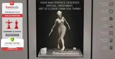 Watch the tutorial on how to assemble the 3D Printed Bubble Head Nurse model from the provided 3D Print Files onGambody YouTube channel.