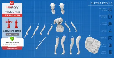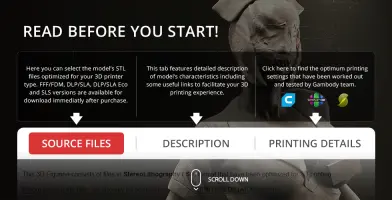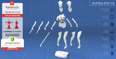 - The model is available in recommended scales of 1:8 for the FFF/FDM version and 1:16 for the DLP/SLA/SLS versions.