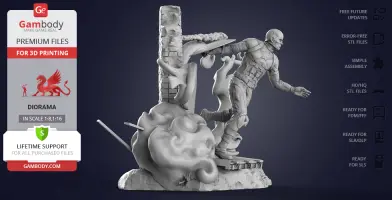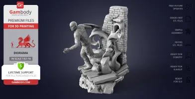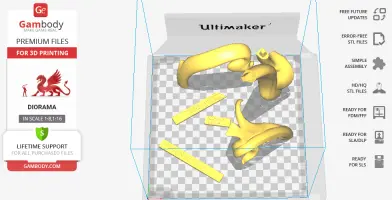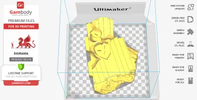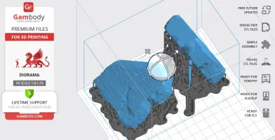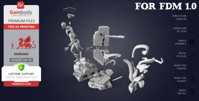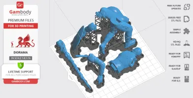 - Made with a simplified version of the platform resembling a battlefield scene + has a version of this platform divided into 4 parts for printers with smaller build plates;